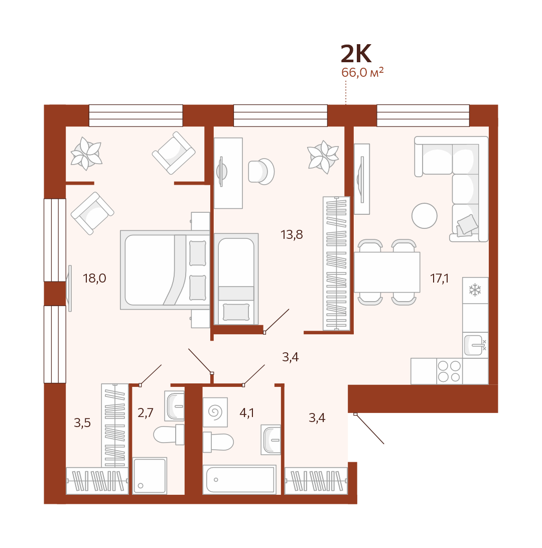 - 2-комнатная № 79